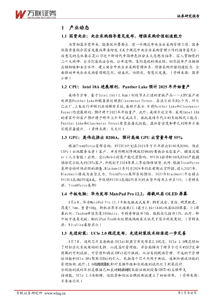 万联证券:电子行业周观点:UCle2.0规范发布,央企采购指导政策出台.pdf