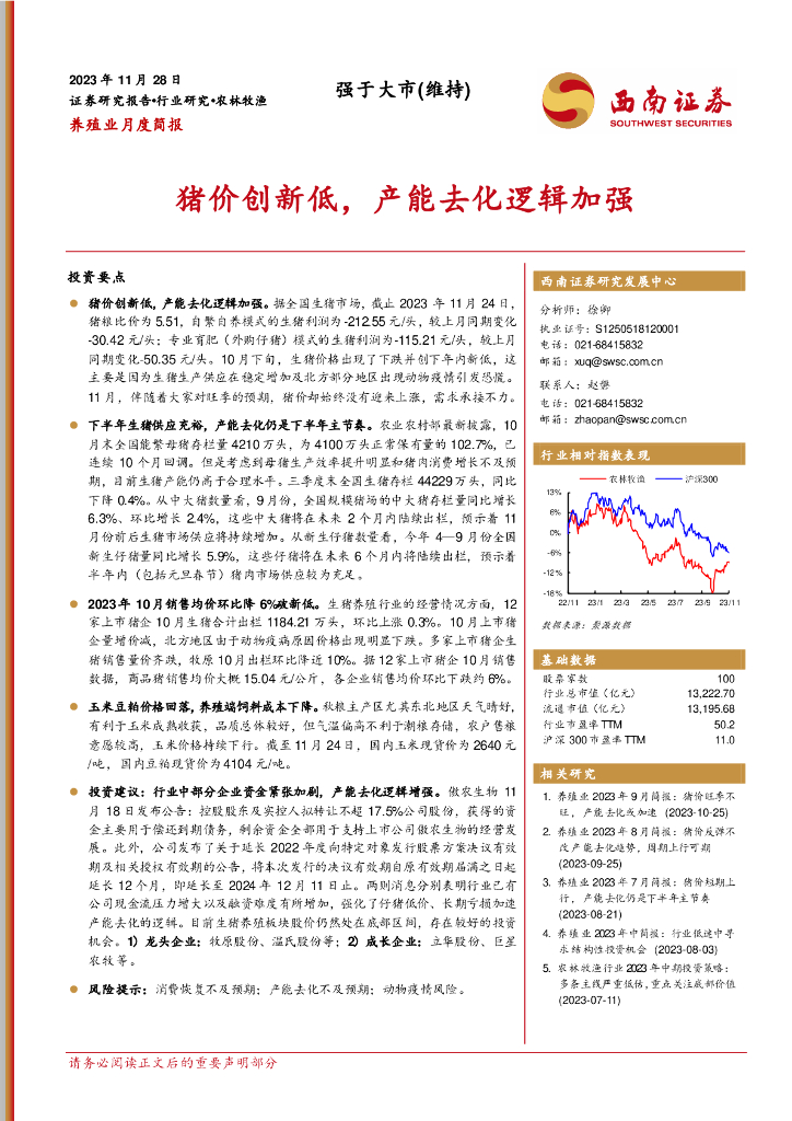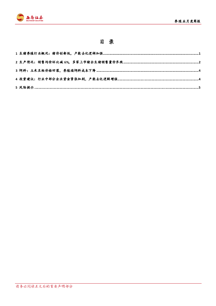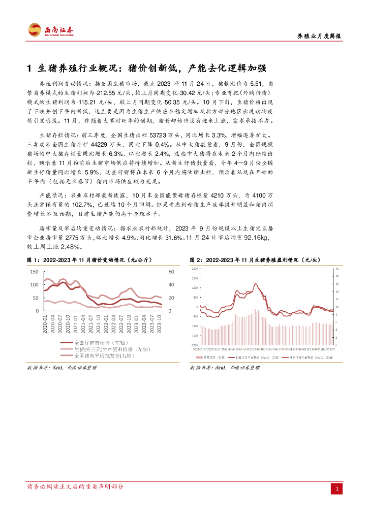西南证券:养殖业月度简报:猪价创新低,产能去化逻辑加强.pdf