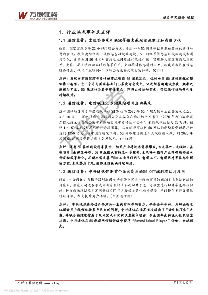 万联证券:通信行业周观点:5G基建集采开启,助力产业长期向好.pdf