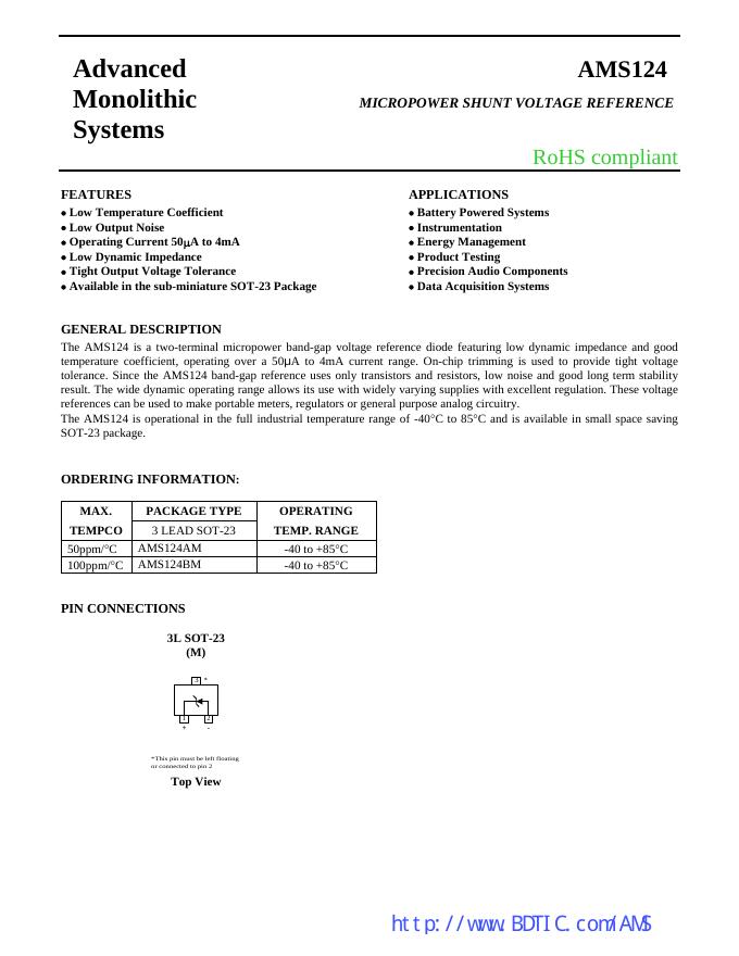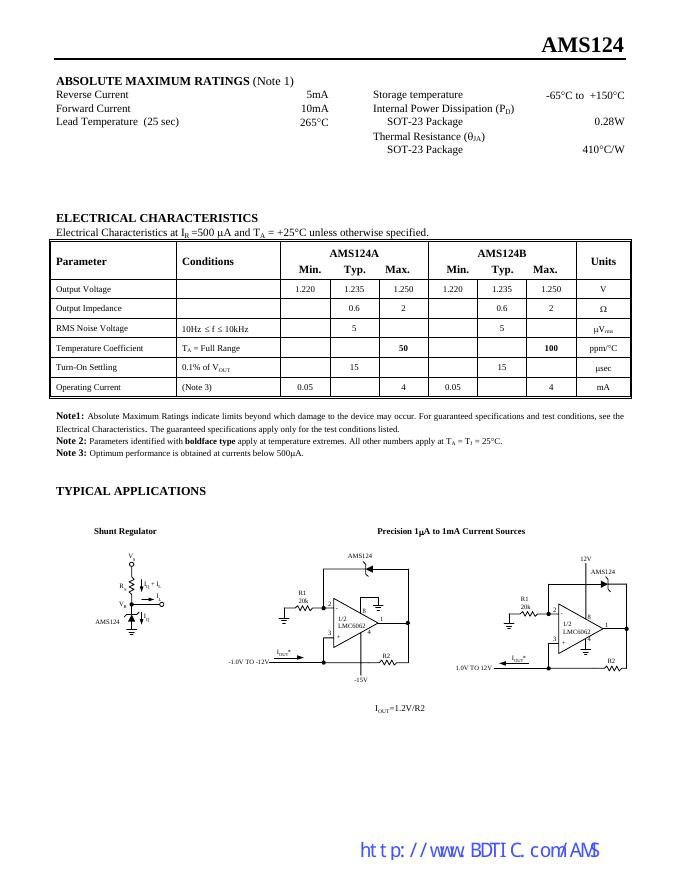 AMS124 MICROPOWER SHUNT VOLTAGE REFERENCE 数据手册.pdf