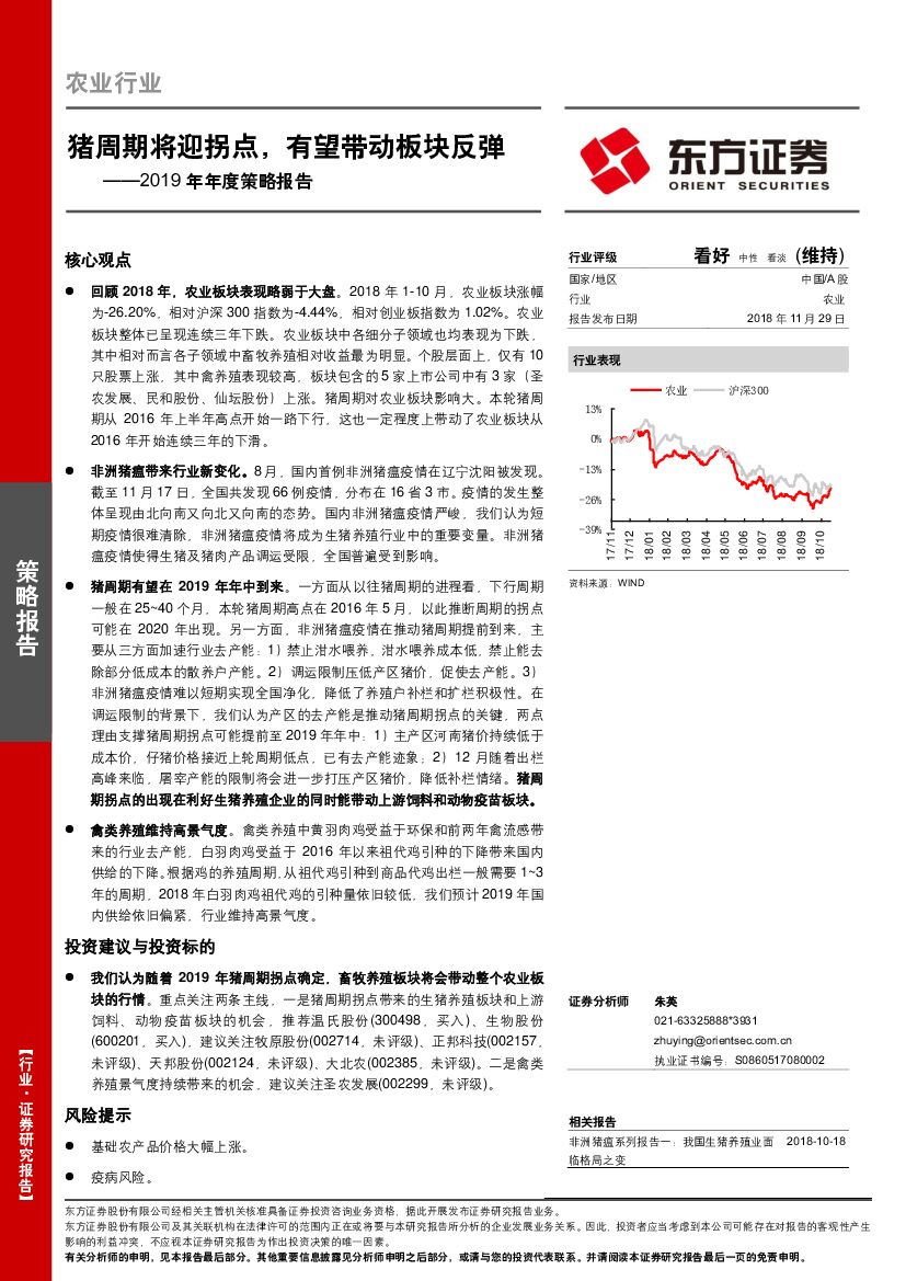 东方证券:农业行业:2019年年度策略报告,猪周期将迎拐点,有望带动板块反弹.pdf