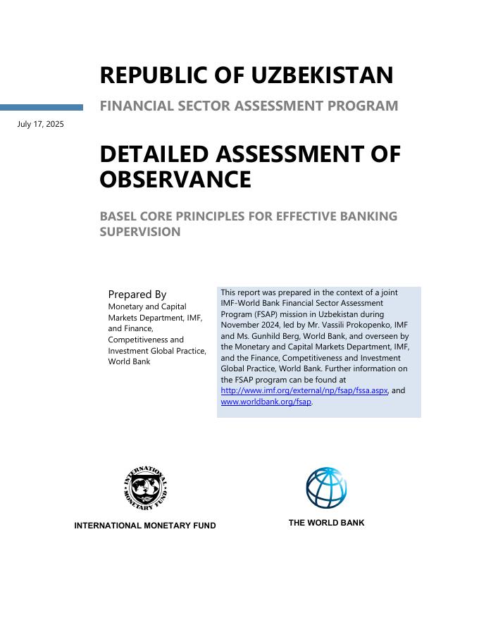 国际货币基金组织:2025年乌兹别克斯坦共和国:金融部门评估计划-详细遵守评估-有效银行监管的巴塞尔核心原则报告(英文版).pdf