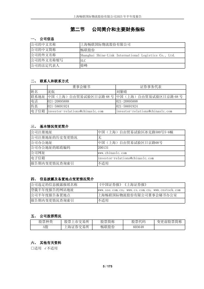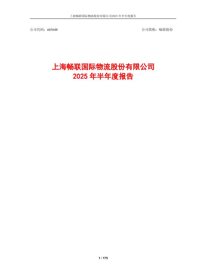 603648-畅联股份:上海畅联国际物流股份有限公司2025年半年度报告.pdf