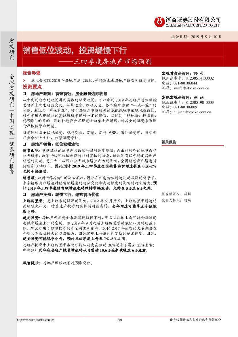 浙商证券:三四季度房地产市场预测:销售低位波动,投资缓慢下行.pdf