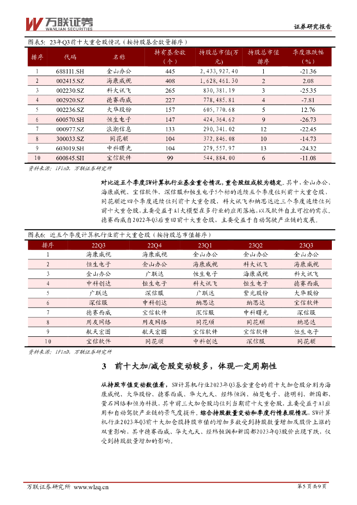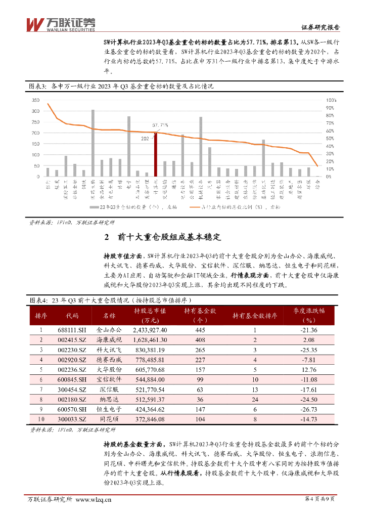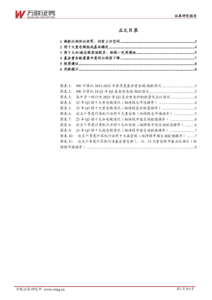 万联证券:计算机行业跟踪报告:Q3基金重仓维持超配,抱团现象持续改善.pdf