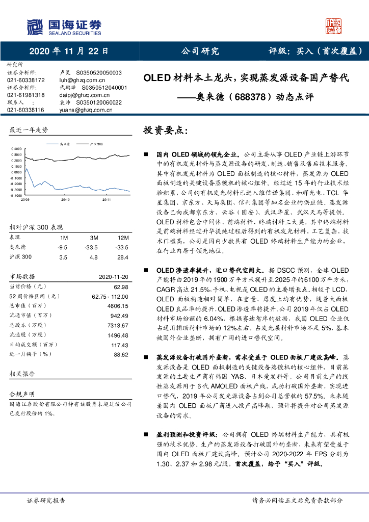 国海证券:奥来德(688378)-动态点评:OLED材料本土龙头,实现蒸发源设备国产替代.pdf