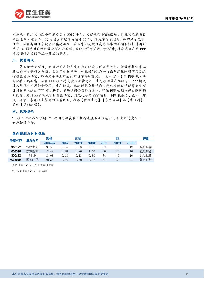 民生证券:环保行业:财政部第四批PPP示范项目点评-环保类项目个数占比近40%,示范引领推动落地率加速.pdf