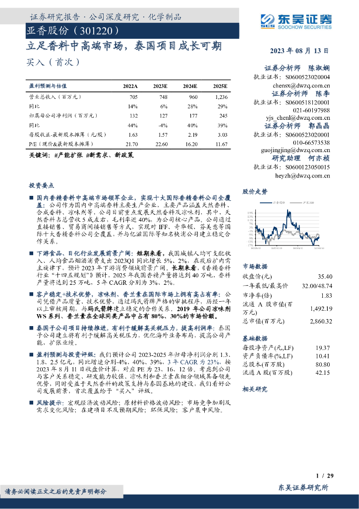 东吴证券:亚香股份(301220)-立足香料中高端市场,泰国项目成长可期.pdf