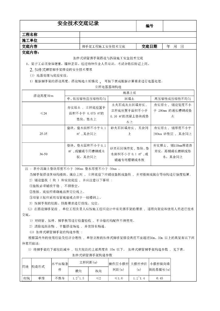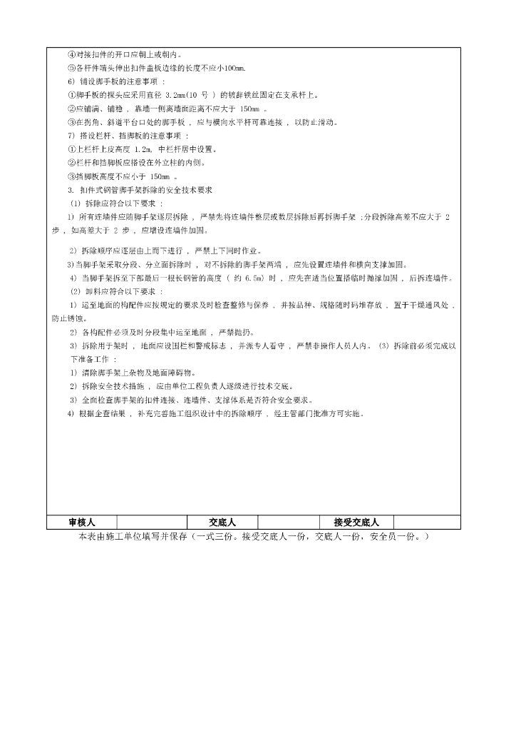 扣件式钢管脚手架搭设与拆除安全技术交底.doc