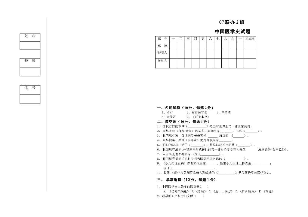 《中国医学史》07级联合办学中国医学史试卷.pdf
