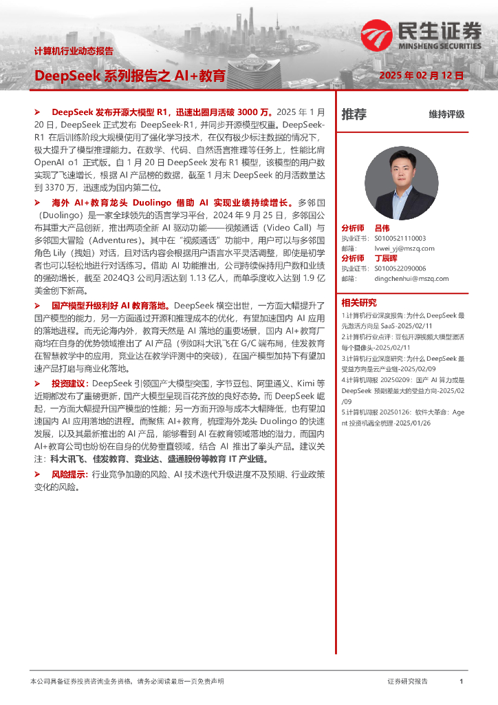 民生证券:计算机行业动态报告:DeepSeek系列报告之AI+教育.pdf