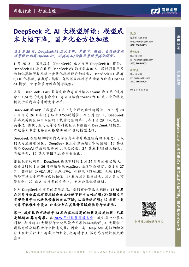 浦银国际证券:科技行业:DeepSeek之AI大模型解读:模型成本大幅下降,国产化全方位加速.pdf
