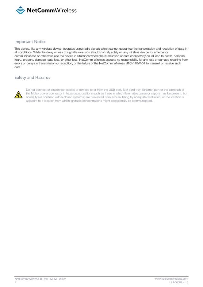 NetComm Wireless 4G WiFi M2M路由器NTC-140W-01用户指南.pdf