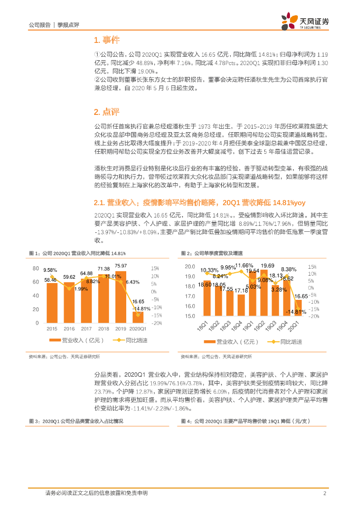 天风证券:上海家化(600315)-疫情致20Q1业绩承压,欧莱雅原高管接任CEO,美妆龙头再起航.pdf