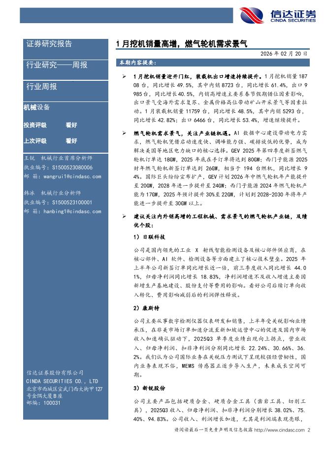 信达证券:机械设备行业周报:1月挖机销量高增,燃气轮机需求景气.pdf