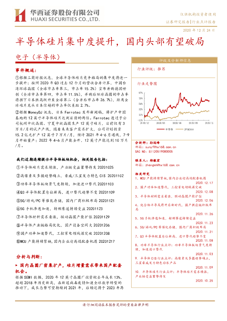 华西证券:电子(半导体)行业:半导体硅片集中度提升,国内头部有望破局.pdf