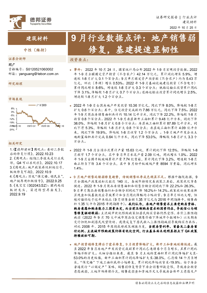 德邦证券:建筑材料9月行业数据点评:地产销售弱修复,基建提速显韧性.pdf