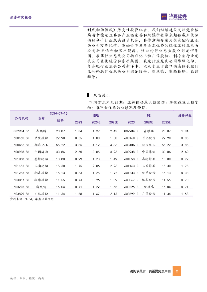 华鑫证券:基础化工行业周报:三聚氰胺、赖氨酸等涨幅居前,建议继续关注涤纶长丝、制冷剂和农化板块.pdf