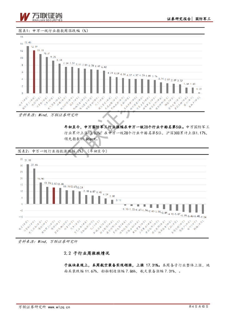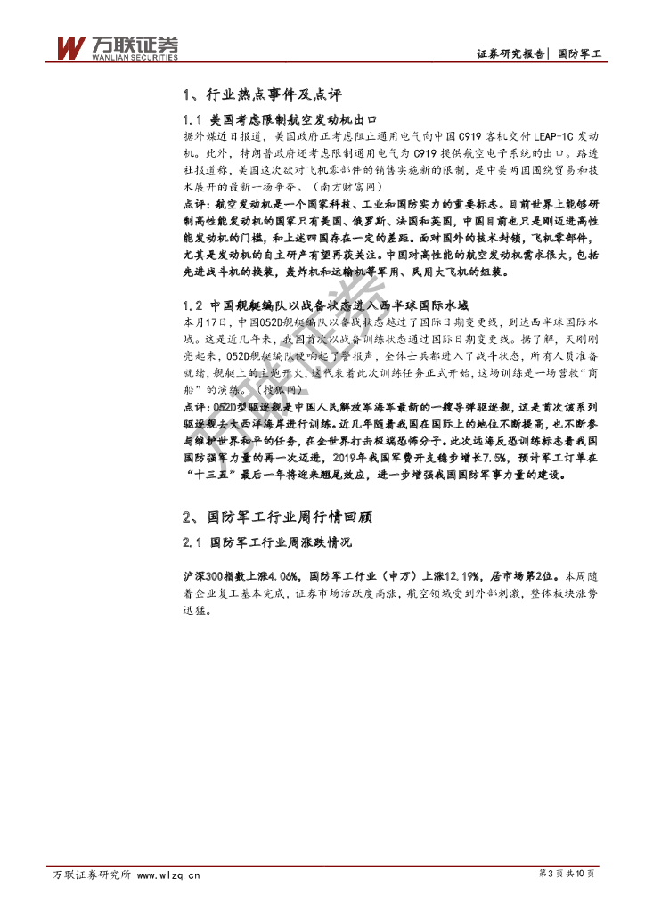 万联证券:国防军工行业周观点:板块涨势强劲,航空领域自主化研产料将加速.pdf