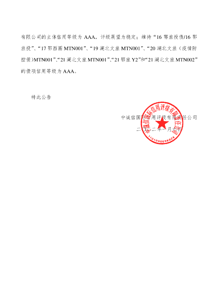 中诚信:中诚信国际关于确认湖北文化旅游集团有限公司主体信用等级及相关债项信用等级的公告.pdf