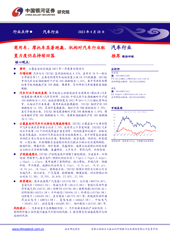中国银河:汽车行业:商用车、摩托车显著跑赢,机构对汽车行业配置力度仍在持续回落.pdf