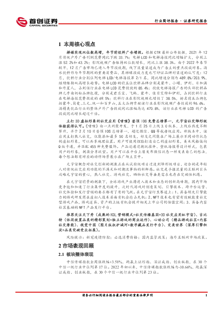 首创证券:传媒行业简评报告:年节营销助力梯媒高增,“元宇宙”产品登顶免费榜.pdf