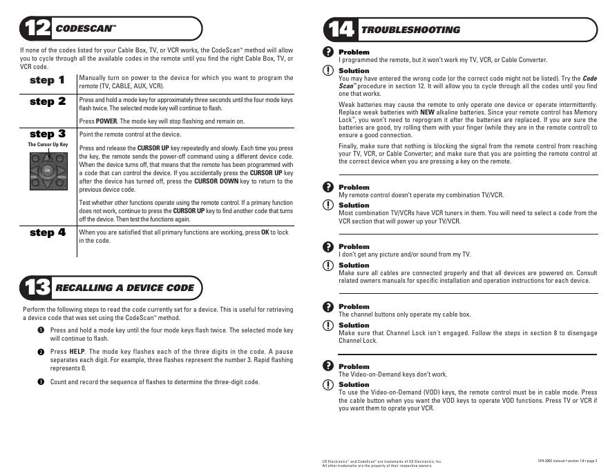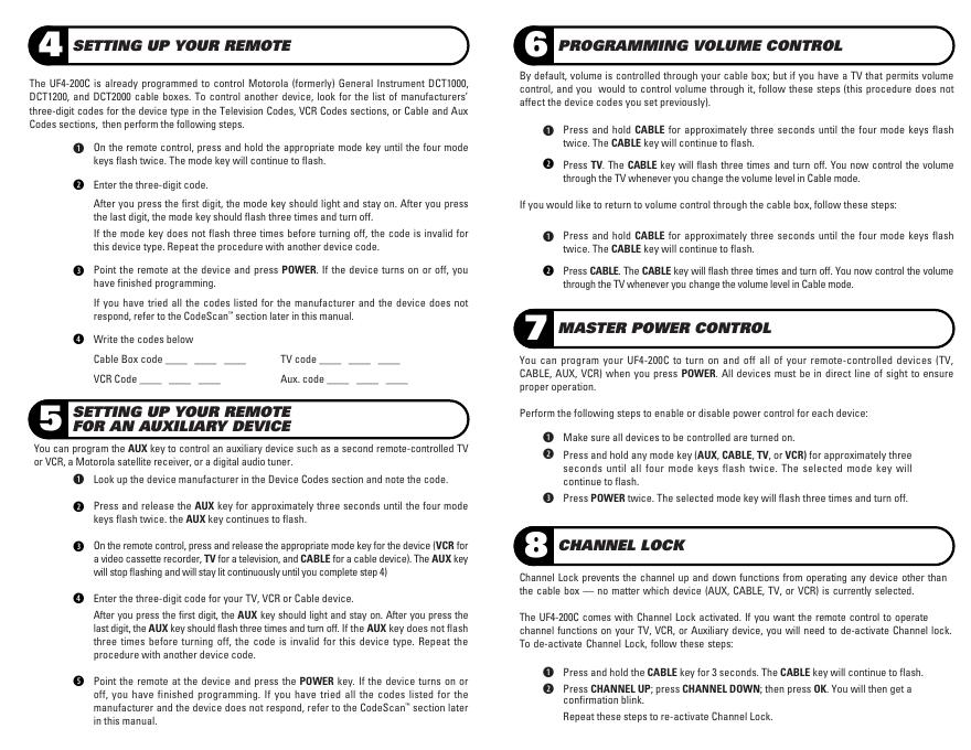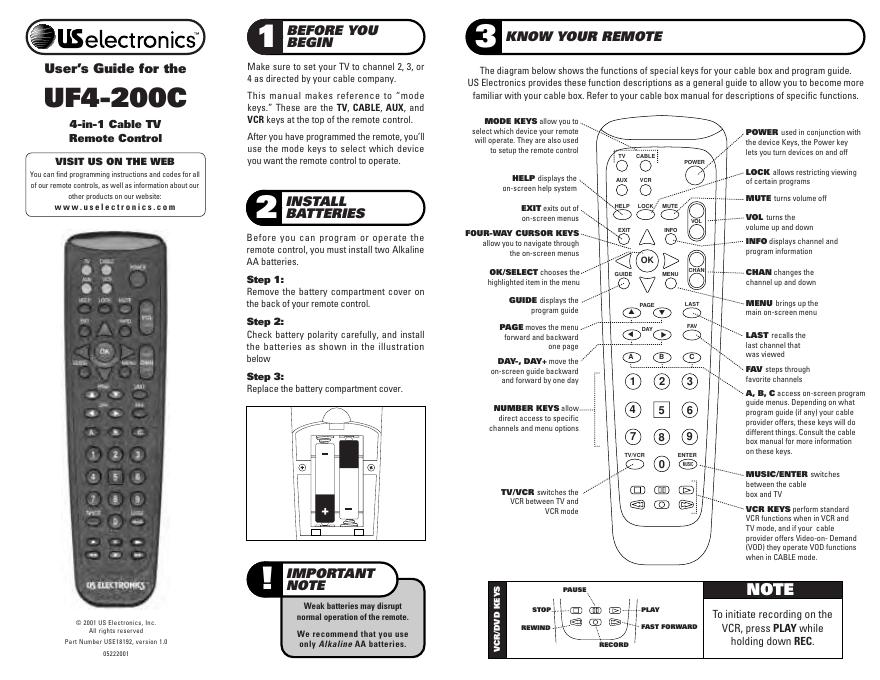 US Electronics, Inc. UF4-200C 4合一有线电视遥控器用户指南.pdf
