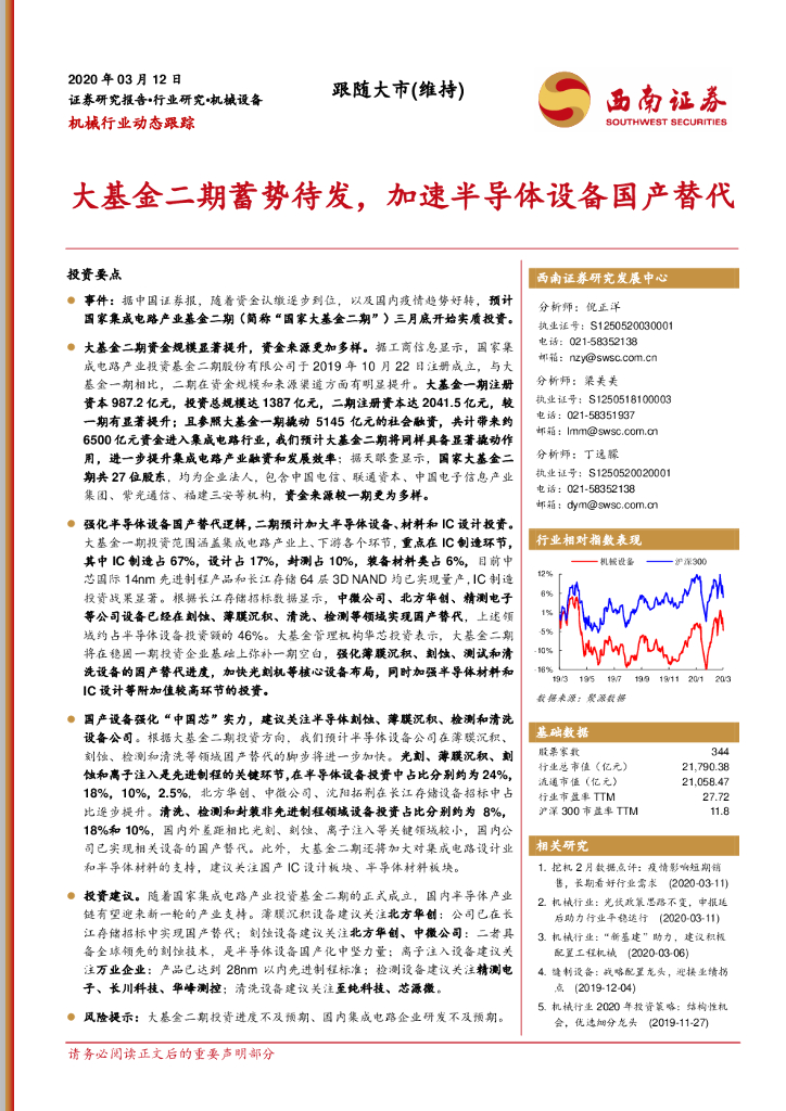 西南证券:机械行业动态跟踪:大基金二期蓄势待发,加速半导体设备国产替代.pdf