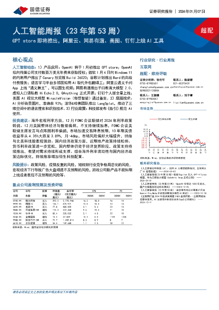 国信证券:人工智能周报(23年第53周):GPT store即将推出,阿里云、网易有道、美图、钉钉上线AI工具.pdf