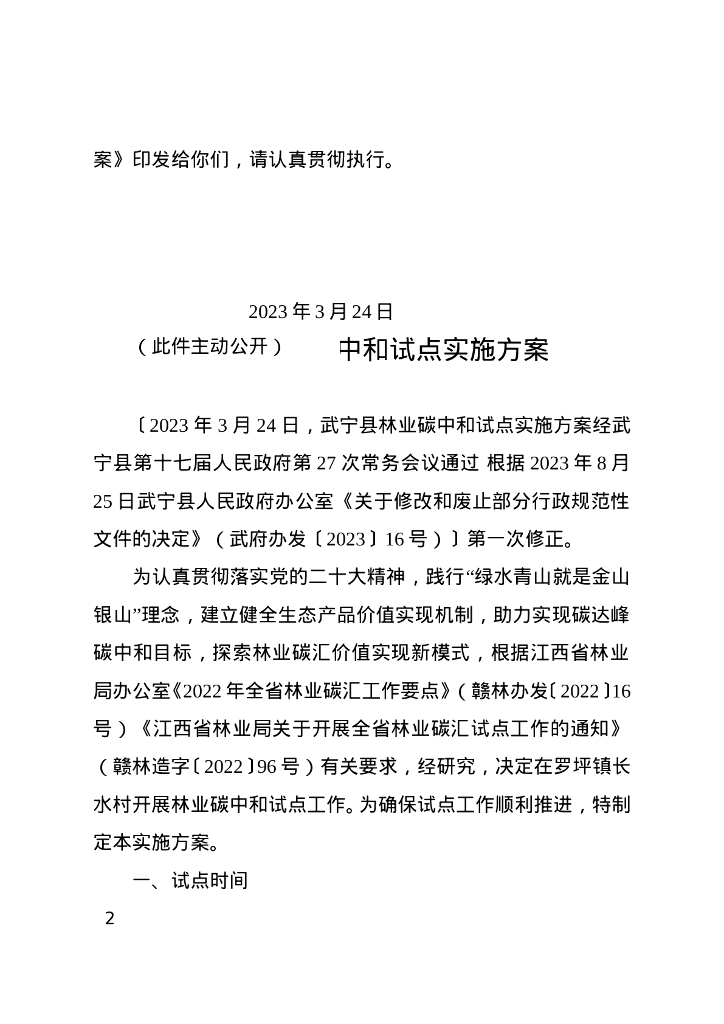 江西省武宁县人民政府:江西武宁县林业碳中和试点实施方案.doc
