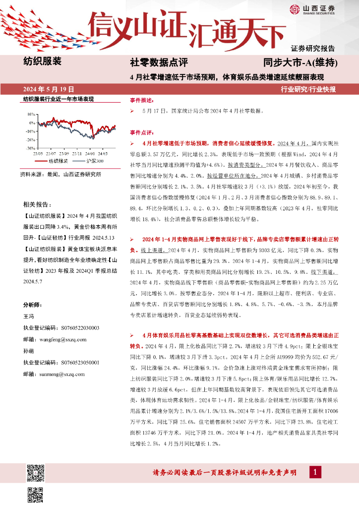 山西证券:纺织服装社零数据点评:4月社零增速低于市场预期,体育娱乐品类增速延续靓丽表现.pdf
