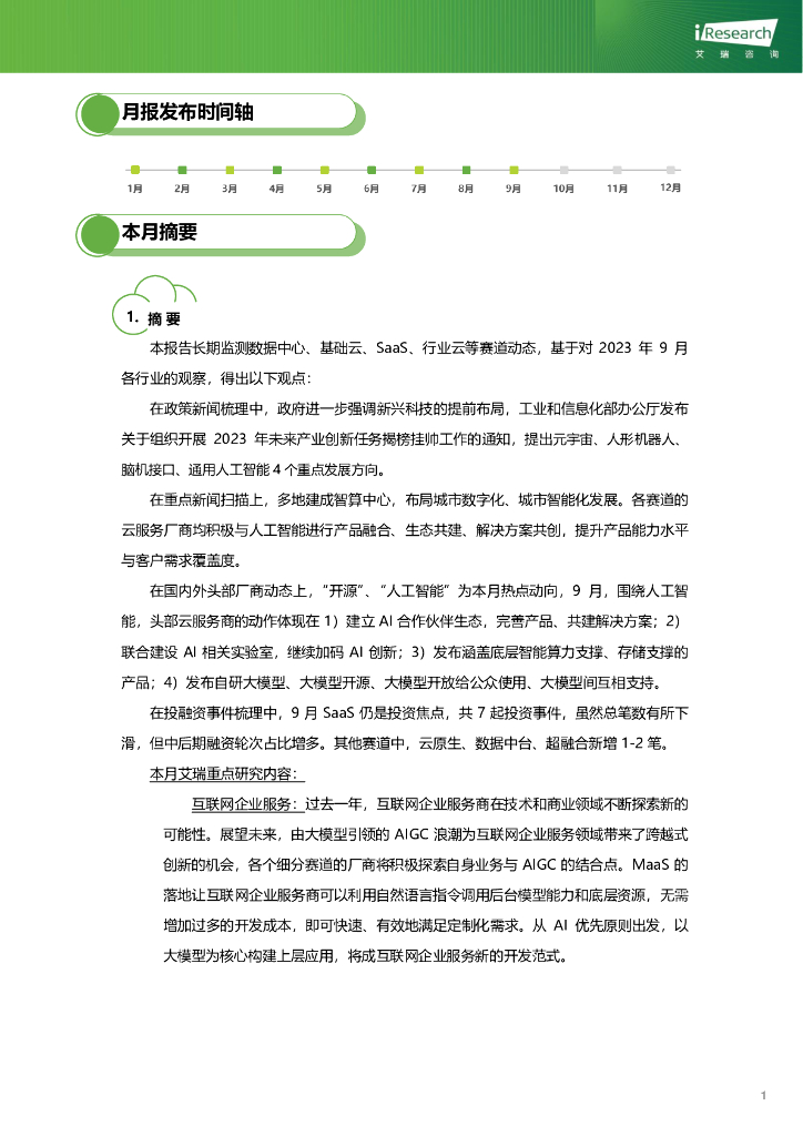 艾瑞咨询:2023年9月云服务行业动态及热点研究月报.pdf