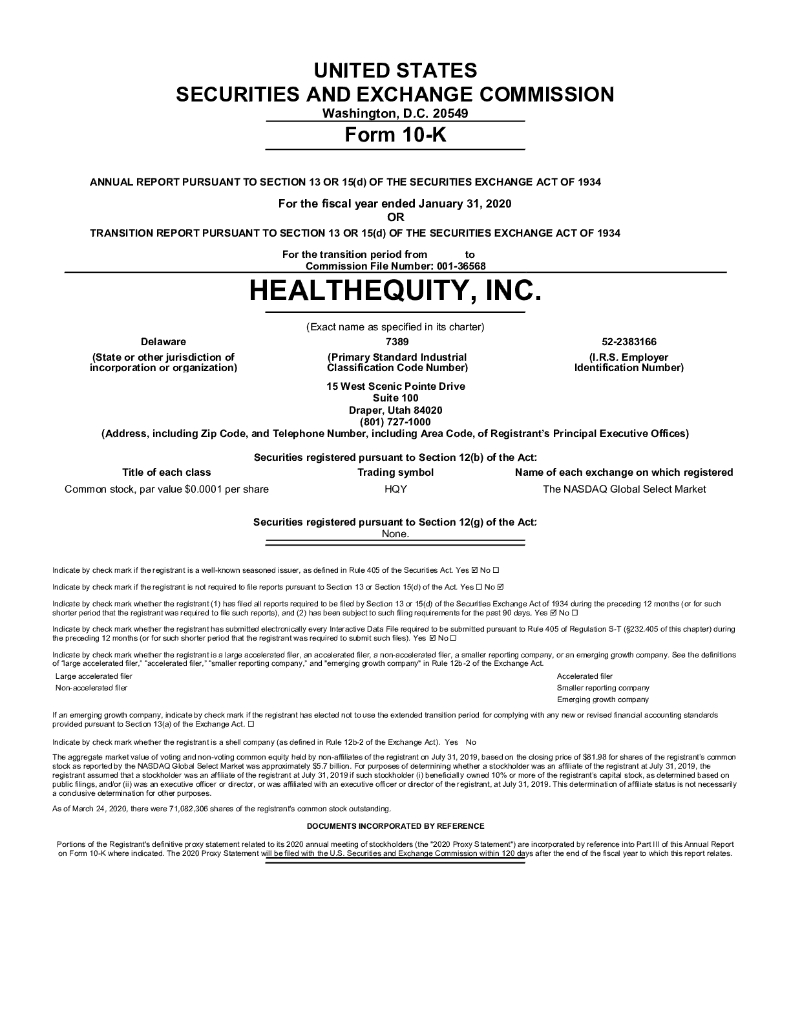 Healthequity Inc(HQY)2020财年年度报告(英文版).pdf