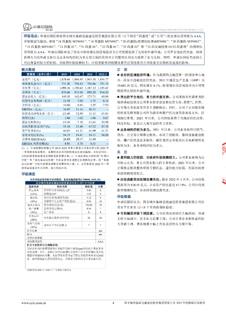 中诚信:西安城市基础设施建设投资集团有限公司2022年度跟踪评级报告.pdf