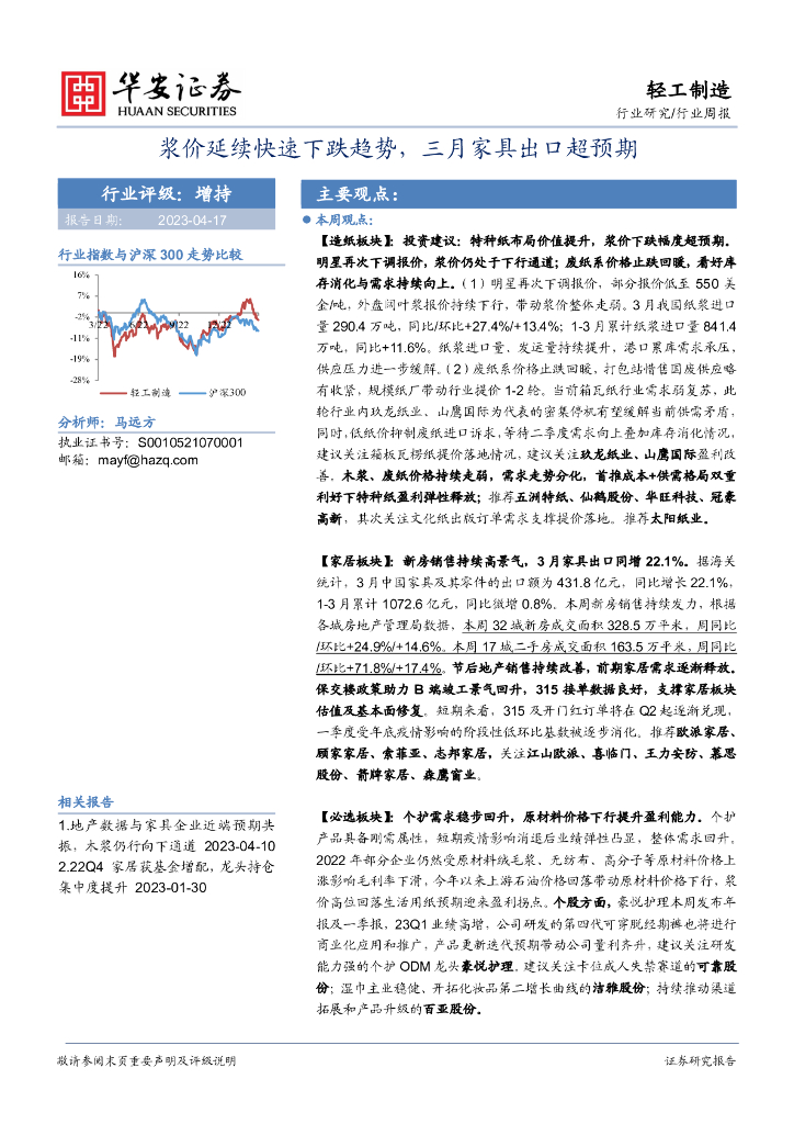 华安证券:轻工制造行业周报:浆价延续快速下跌趋势,三月家具出口超预期.pdf