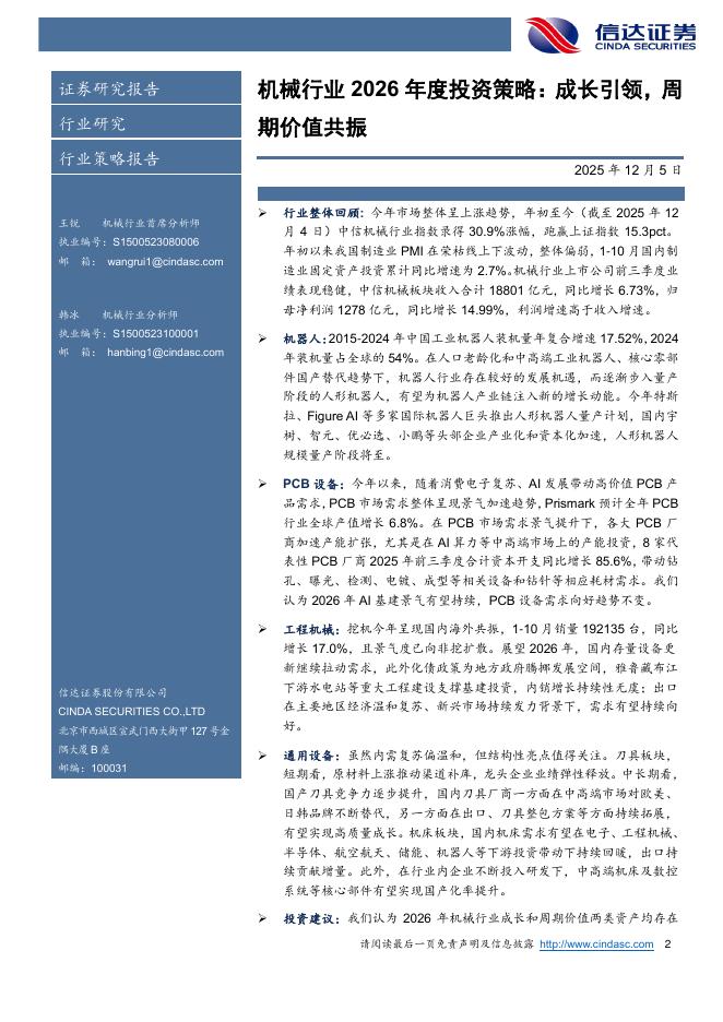 信达证券:机械行业2026年度投资策略:成长引领,周期价值共振.pdf