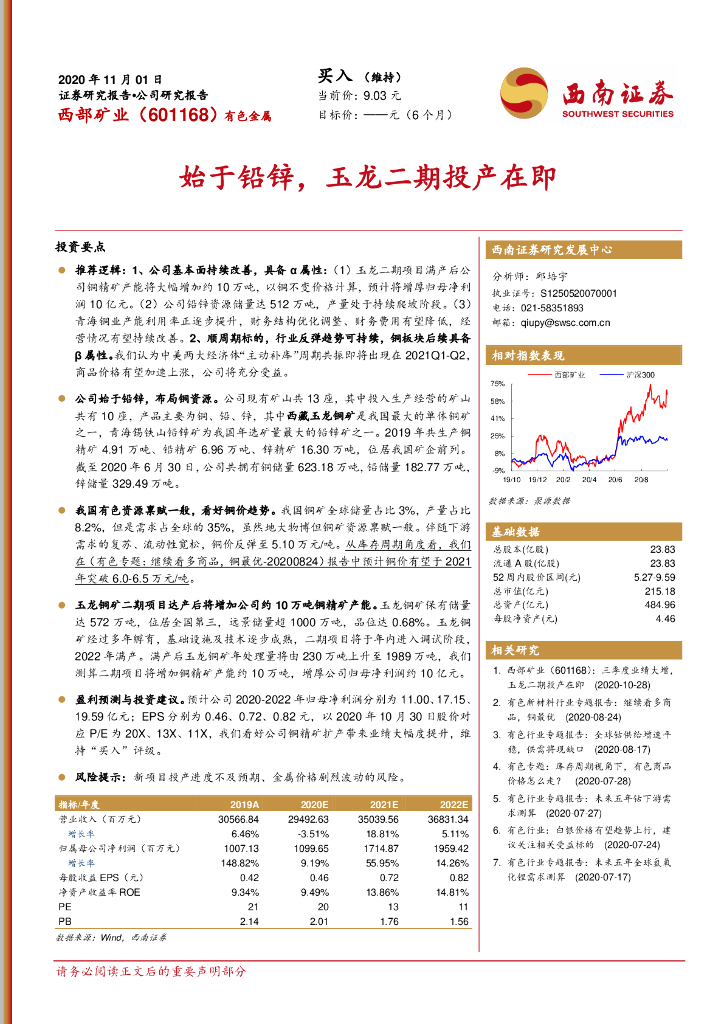 西南证券:西部矿业(601168)-始于铅锌,玉龙二期投产在即.pdf