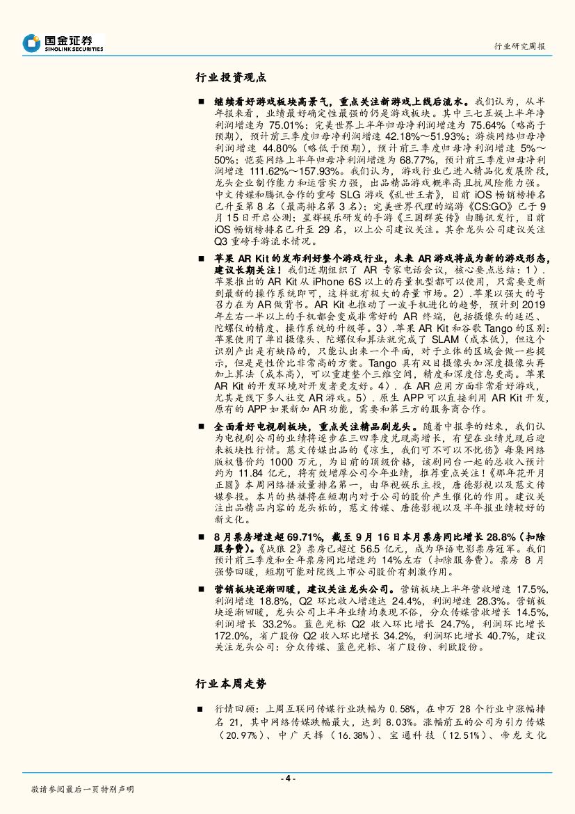 国金证券:传媒互联网研究周报:关注三季报行情,看好AR游戏.pdf