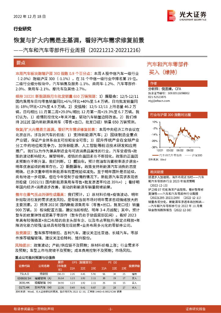 光大证券:汽车和汽车零部件行业周报:恢复与扩大内需是主基调,看好汽车需求修复前景.pdf