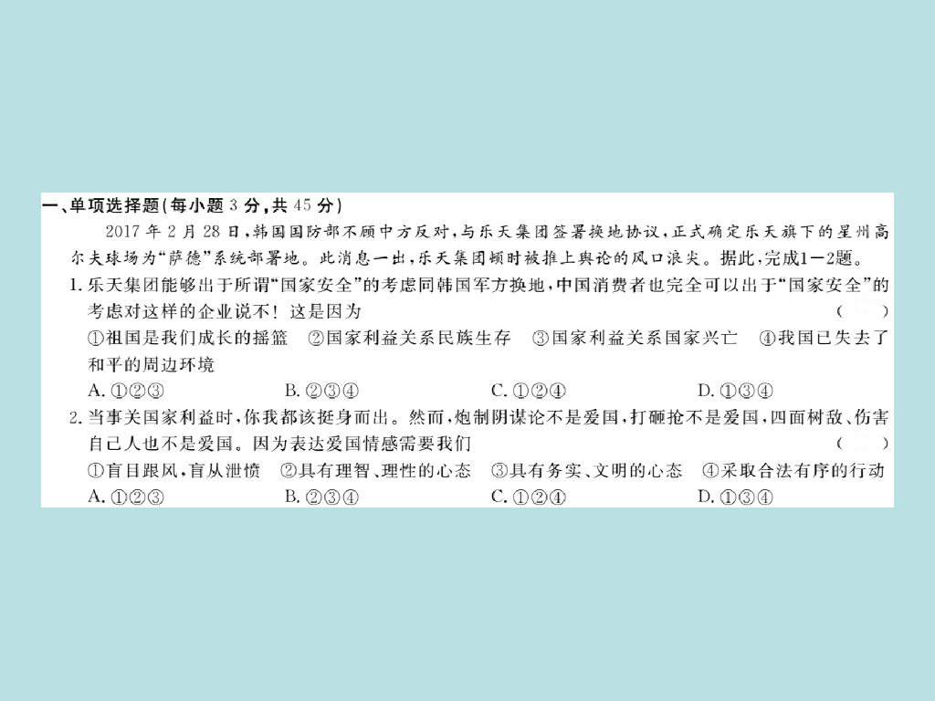 2021部编人教版八年级道德与法治上册习题讲评课件:第四单元检测卷.ppt