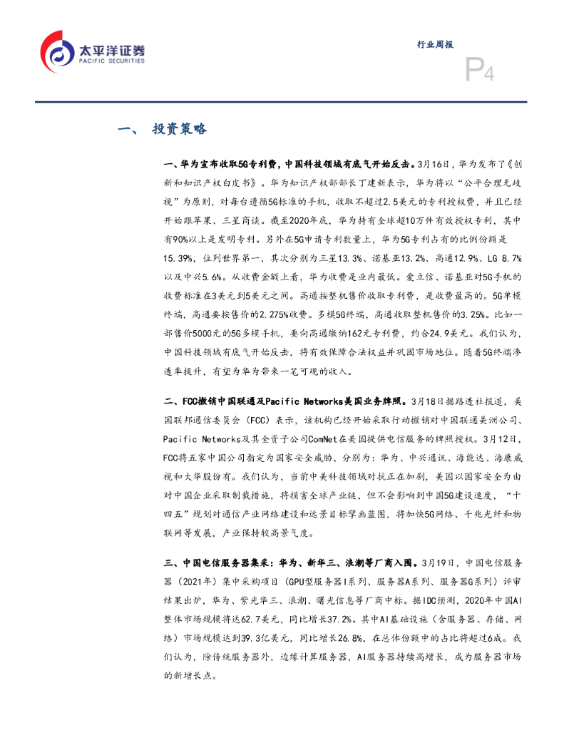 太平洋证券:通信行业周报:华为宣布收取5G专利费,中国科技领域有底气开始反击.pdf