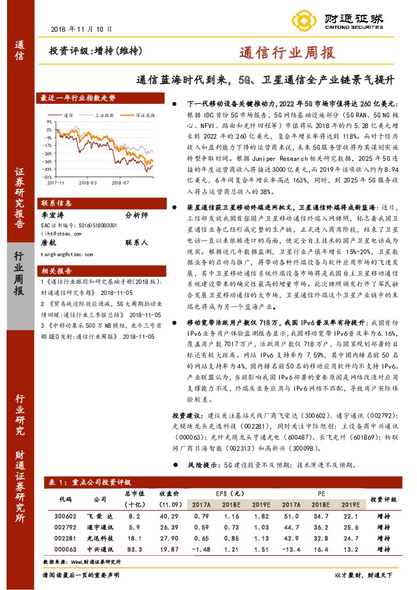 财通证券:通信行业周报:通信蓝海时代到来,5G、卫星通信全产业链景气提升.pdf