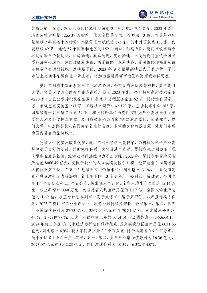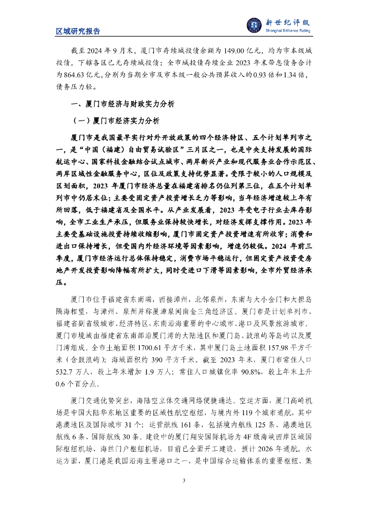 新世纪评级:厦门市及下辖各区经济财政实力与债务研究(2024).pdf