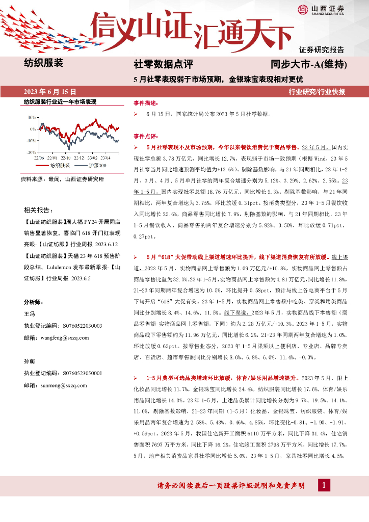 山西证券:纺织服装社零数据点评:5月社零表现弱于市场预期,金银珠宝表现相对更优.pdf