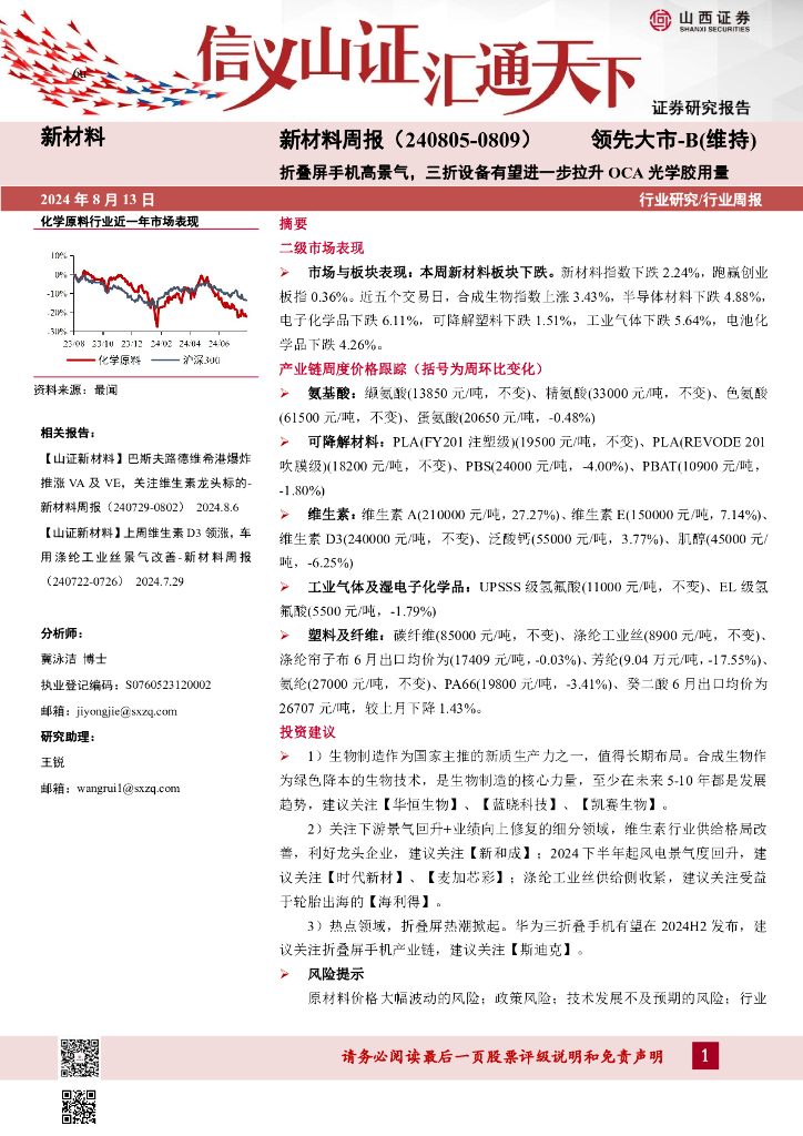 山西证券:新材料行业周报:新材料周报(240805-0809)折叠屏手机高景气,三折设备有望进一步拉升OCA光学胶用量.pdf