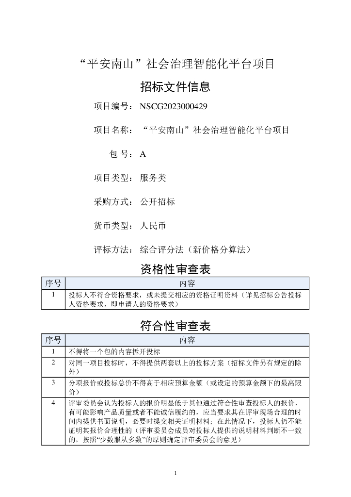 深圳市“平安南山”社会治理智能化平台项目招标文件.pdf