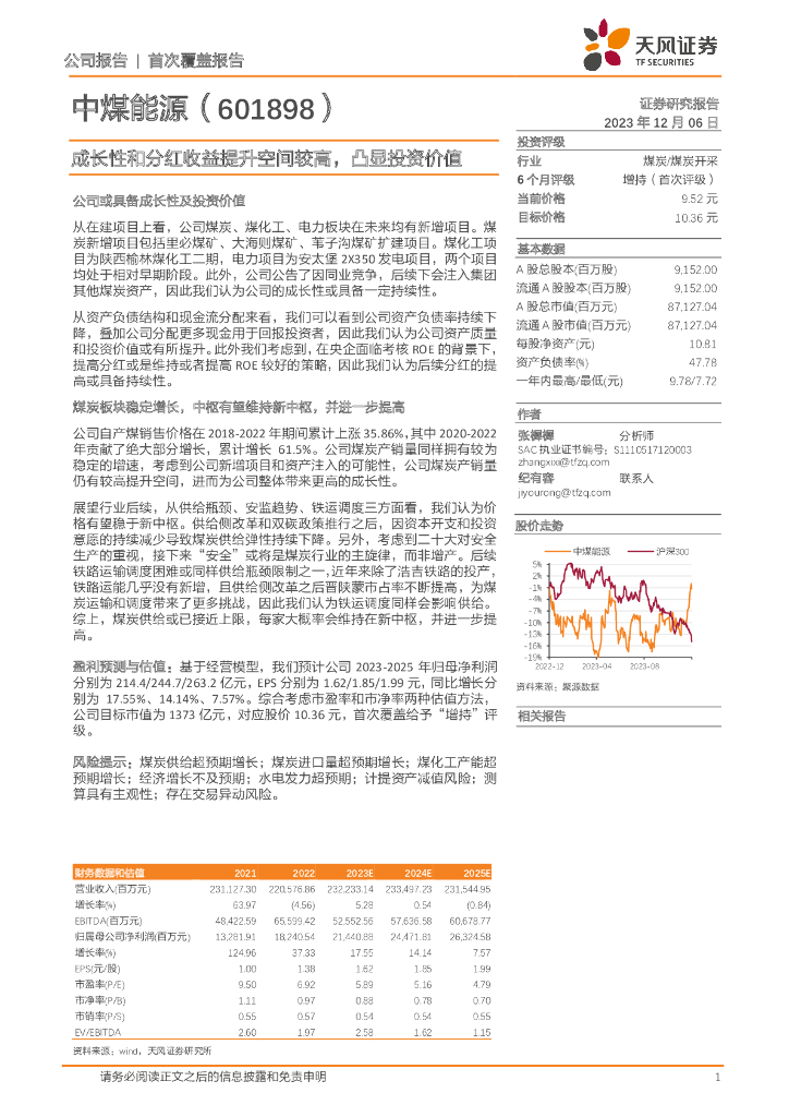 天风证券:中煤能源(601898)-成长性和分红收益提升空间较高,凸显投资价值.pdf