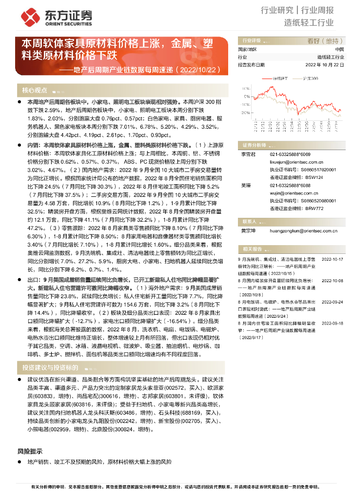 东方证券:造纸轻工行业地产后周期产业链数据每周速递:本周软体家具原材料价格上涨,金属、塑料类原材料价格下跌.pdf
