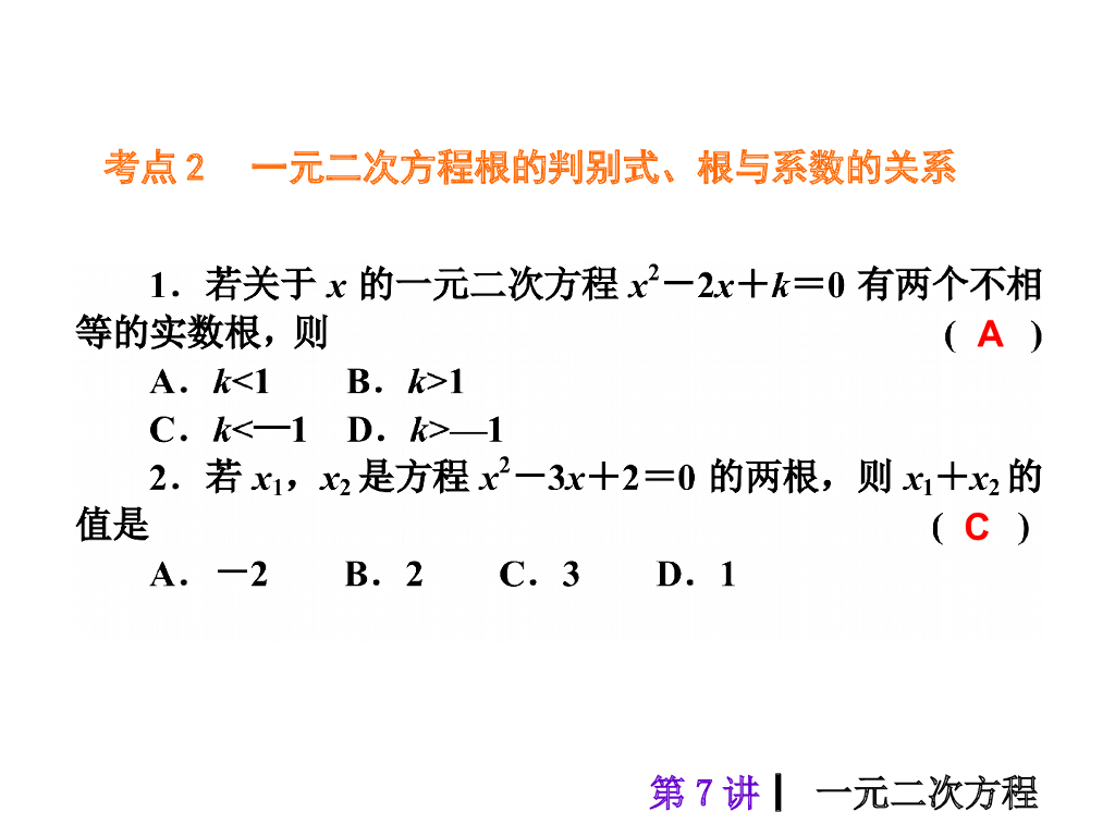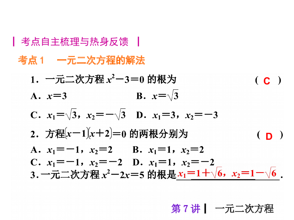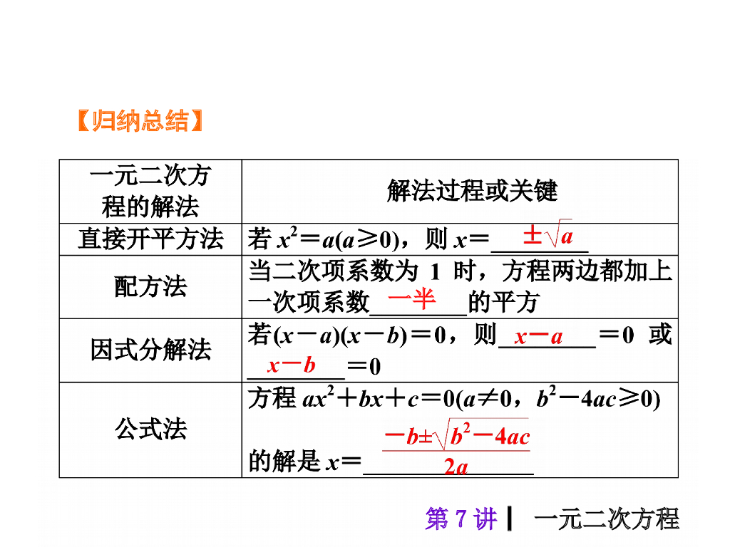 中考复习课件【第7讲】一元二次方程(26页)ppt课件.ppt