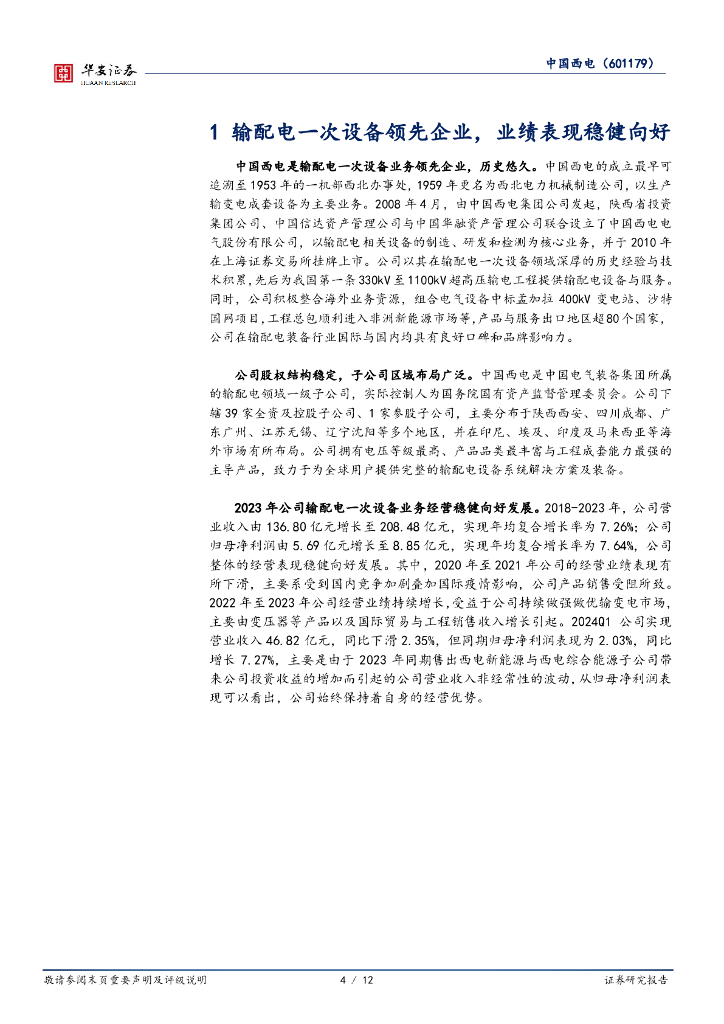 华安证券:中国西电(601179)-一次设备领先企业,特高压与电网投资驱动增长新浪潮.pdf